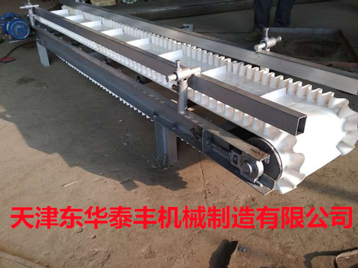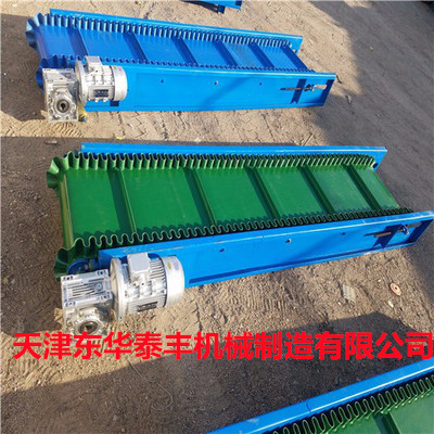 擋板輸送帶擁有水平輸送、傾角輸送、垂直輸送、定量包裝輸送等多種功能。主要用于散裝物料的輸送,包括煤、礦石、沙子、化肥、糧食、食品等。輸送的顆粒從粉末狀到400mm的大粒度皆可。根據輸送機的功率,擋板輸送帶的輸送量能達到1m3/h~6000m3/h。
